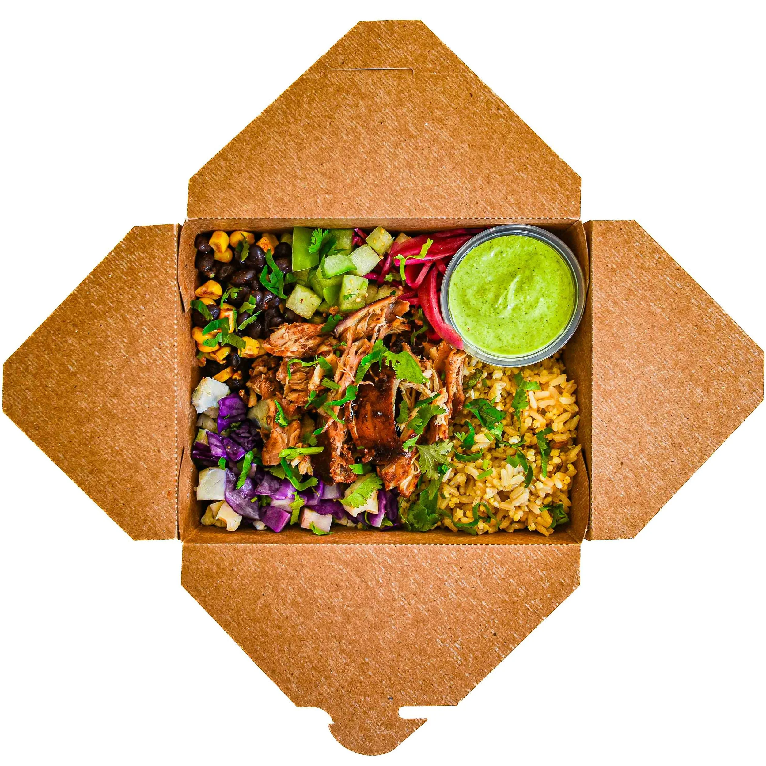 garlic rice & millet + ensalada greens, hand pulled chicken, cauliflower & red cabbage, taco seasoned corn and black beans, fresh tomatillos, pickled onion, cilantro garnish, & choice of palmita house sauces // gluten, dairy, soy, & refined sugar free