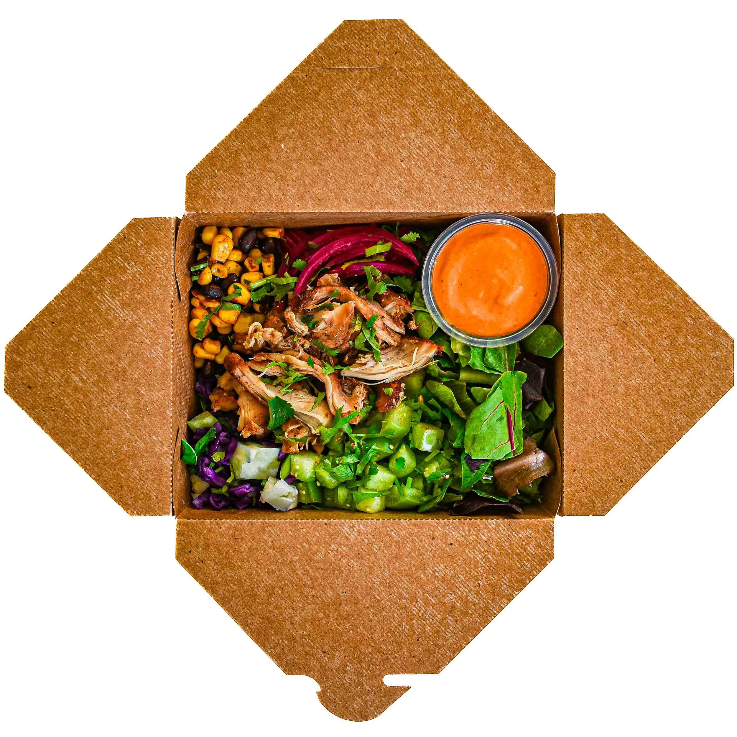 ensalada greens, hand pulled chicken, cauliflower & red cabbage, taco seasoned corn and black beans, fresh tomatillos, pickled onion, cilantro garnish, & choice of palmita house sauces // gluten, dairy, soy, & refined sugar free