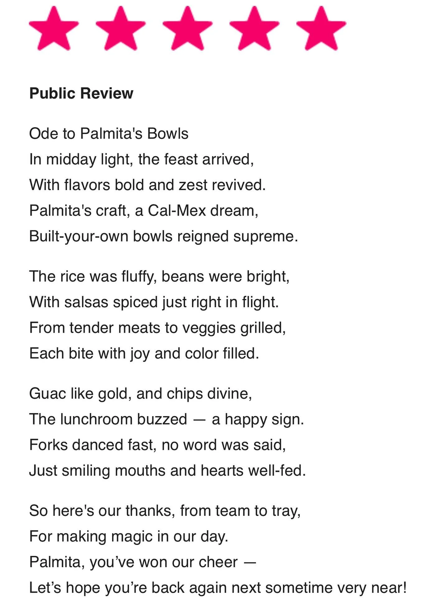 Palmita is brought to you by the creators of Ben’s Fast Food. Same mission, all new concept. Learn more.